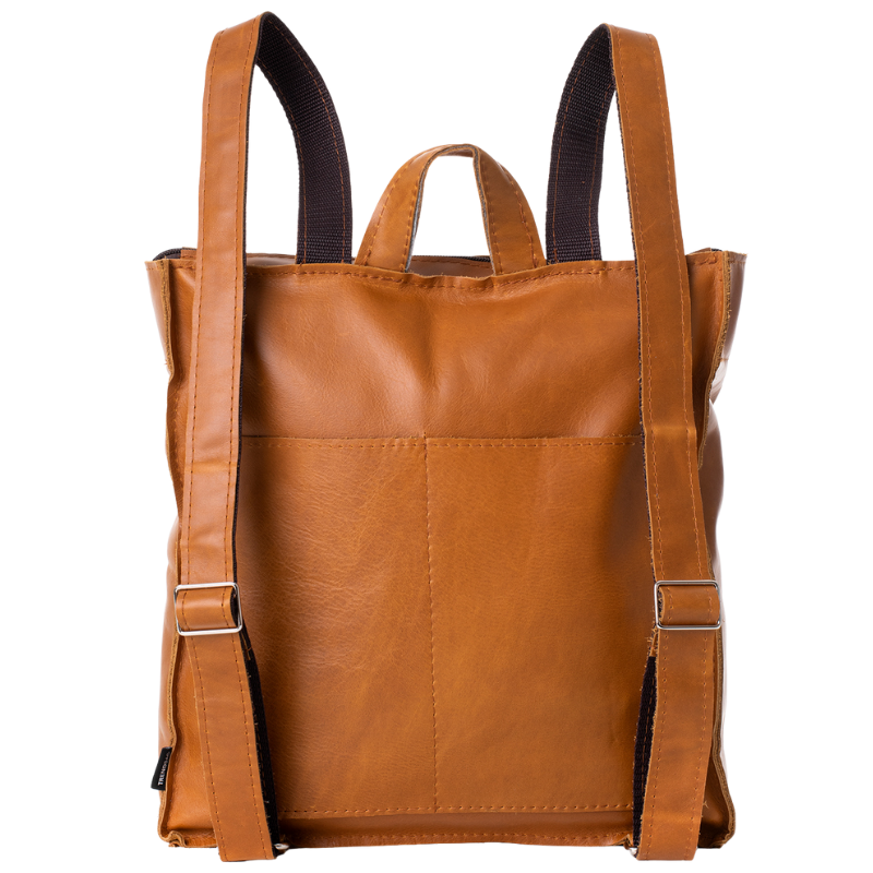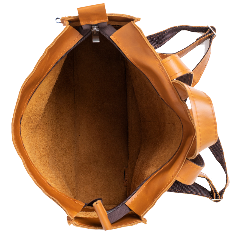 - Ekologická volba: Batoh je vyroben z recyklovaných zbytků kůže z nábytkářského průmyslu, což minimalizuje odpad a šetří přírodu.