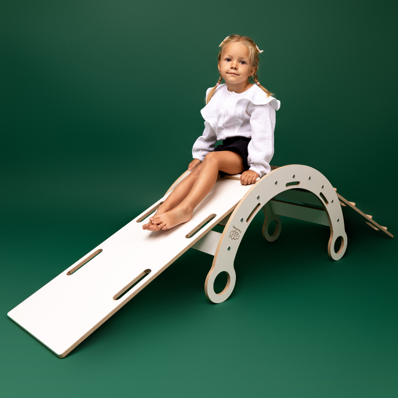 Pohybové houpačky s variabilními funkcemi jsou velmi populární a patří mezi základní Montessori pomůcky v domácnostech i školkách. Díky kombinaci žebříku a skluzavky podporují děti k aktivním domácím hrám a samostatnosti.